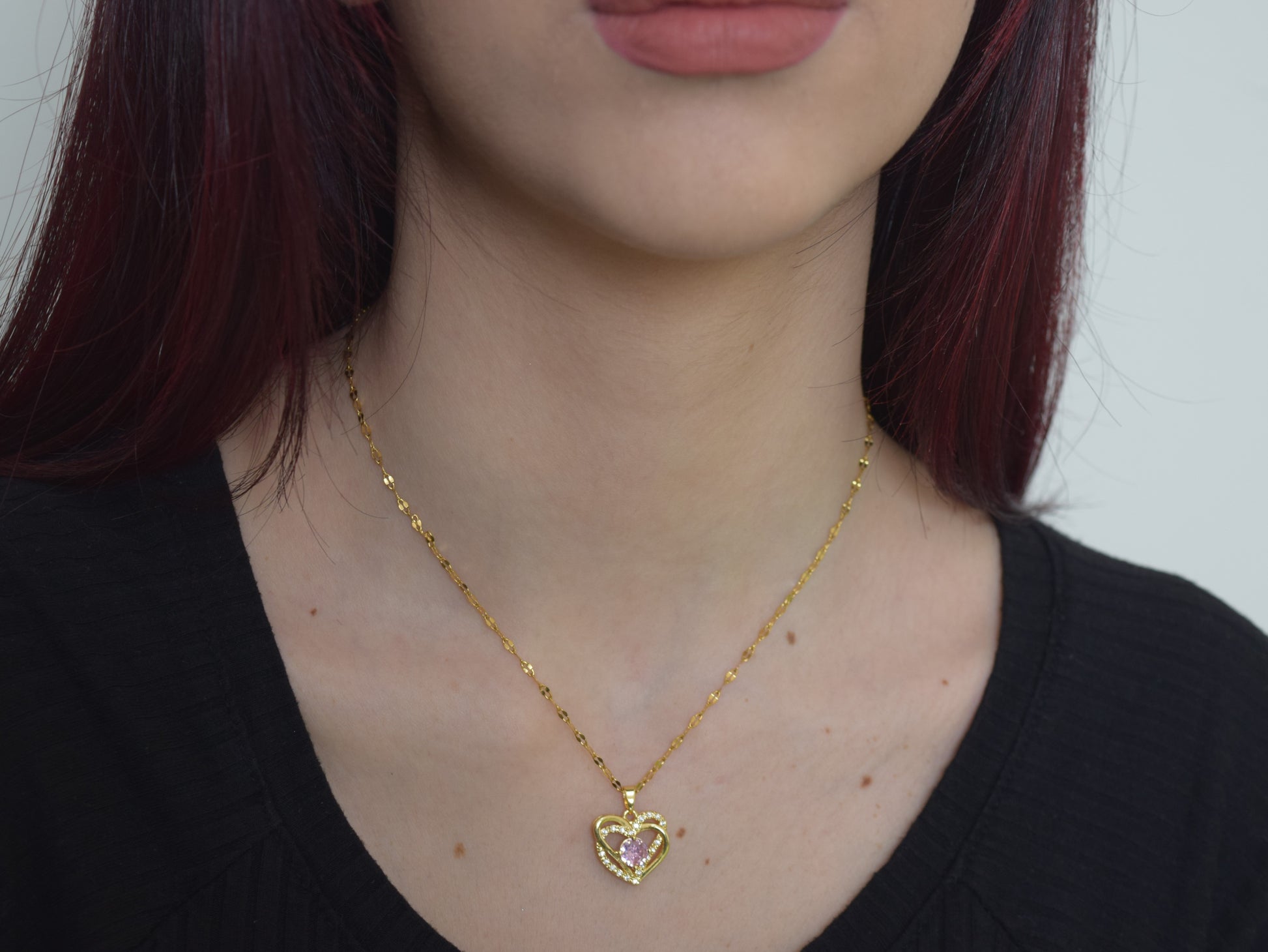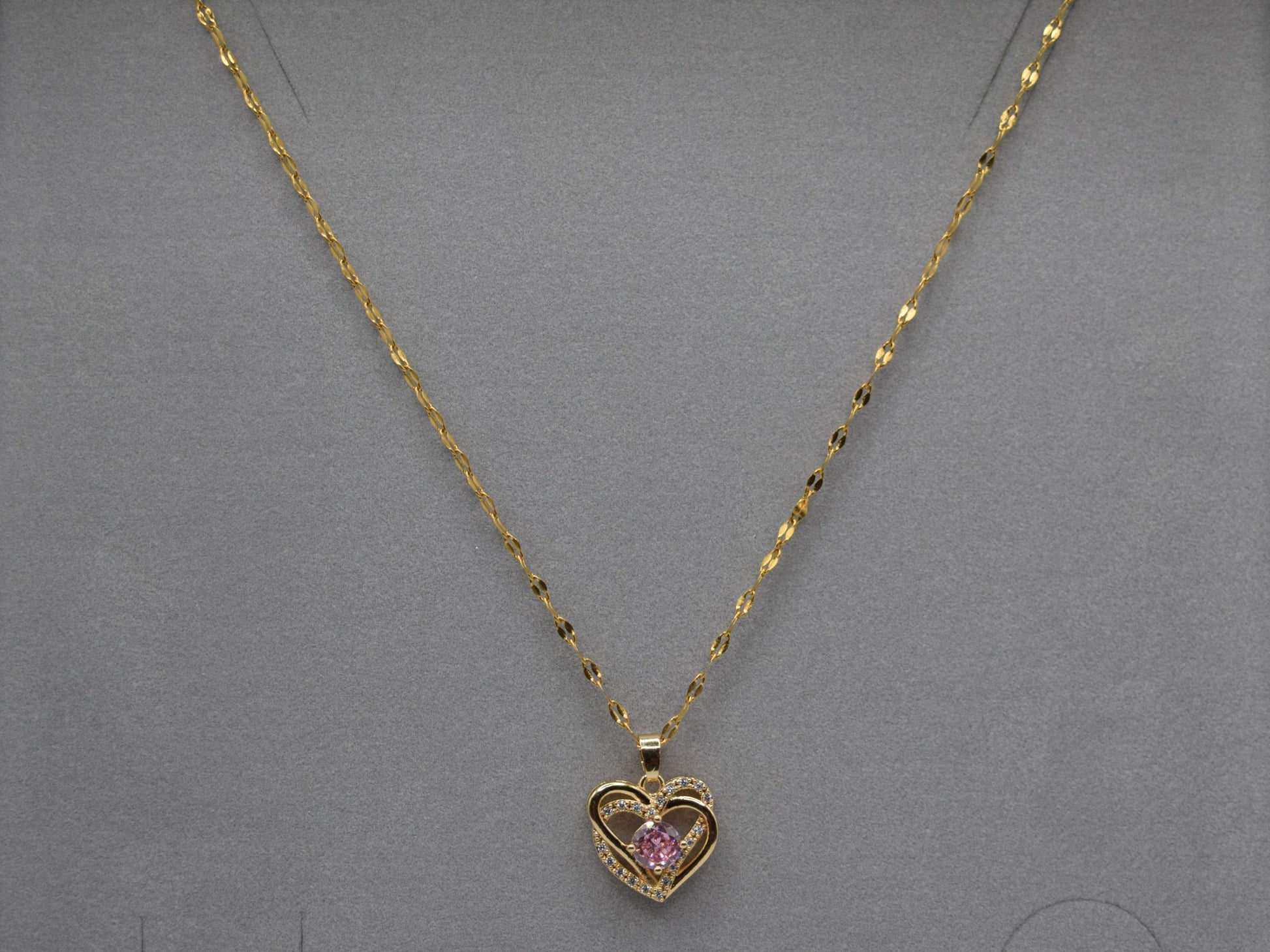 Lasciati incantare dalla nostra bellissima collana oro. Collana con cuore tempestato di strass. Collana con grosso e luminoso zircone rosa che aggiunge un tocco di scintillio ineguagliabile alla tua persona.