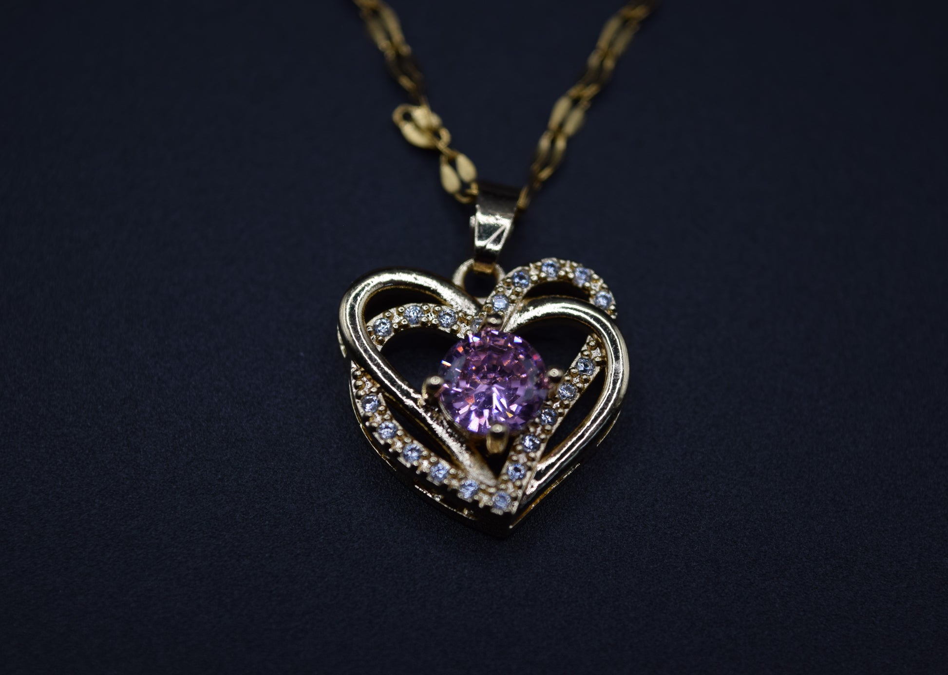 Collana oro con cuore ricoperto di strass, collana con brillante zircone rosa centrale, regalo prezioso, un gioiello che parla al cuore.